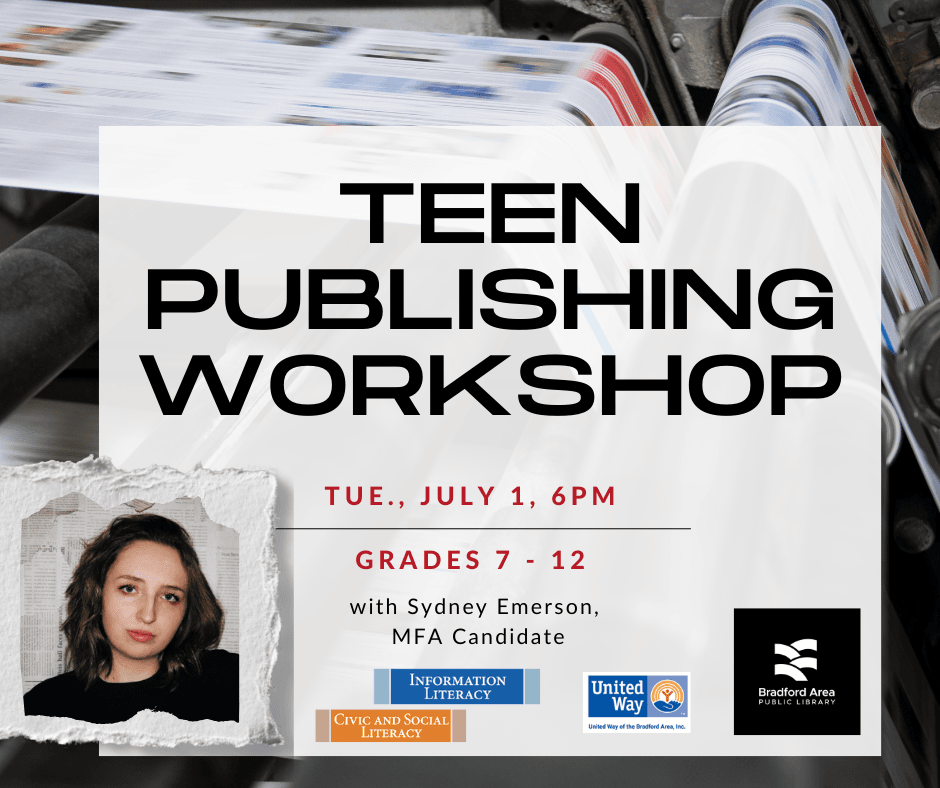 Teens will discover the various paths to careers in writing and getting work published in this workshop led by Sydney Emerson, a Bradford High graduate and current MFA candidate and graduate Teaching Assistant at the University of Mississippi! Participants will have opportunities to be creative and share writing samples.