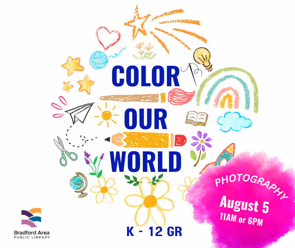 The Summer Reading Program is open to students in grades K - 12 (older students will be in a separate group). This year we are offering the same program, during two different time slots, so that participants can select the time that best fits their schedule (11AM or 6PM). Our younger participants will be learning how a camera works and making a paper camera that shows them what happens inside a camera when you point the lens at something.
