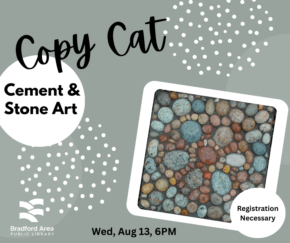 This is a monthly crafting program for adults. We explore a new project each month. This month we are creating Cement Garden Art. Registration is necessary