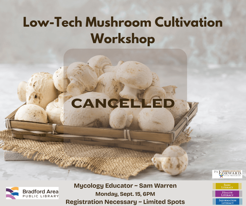 Participants will learn the concepts and sterile techniques behind indoor mushroom cultivation using methods that are affordable and easily replicable at home. Mycology educator, Sam Warren will share a visual presentation covering the concepts of cultivation. Registered guests will practice hands-on culturing techniques in a still air box, and inoculate a bag of substrate. All individuals will leave with a petri dish or jar of spawn at the conclusion of the workshop. This is a free, adult program.
