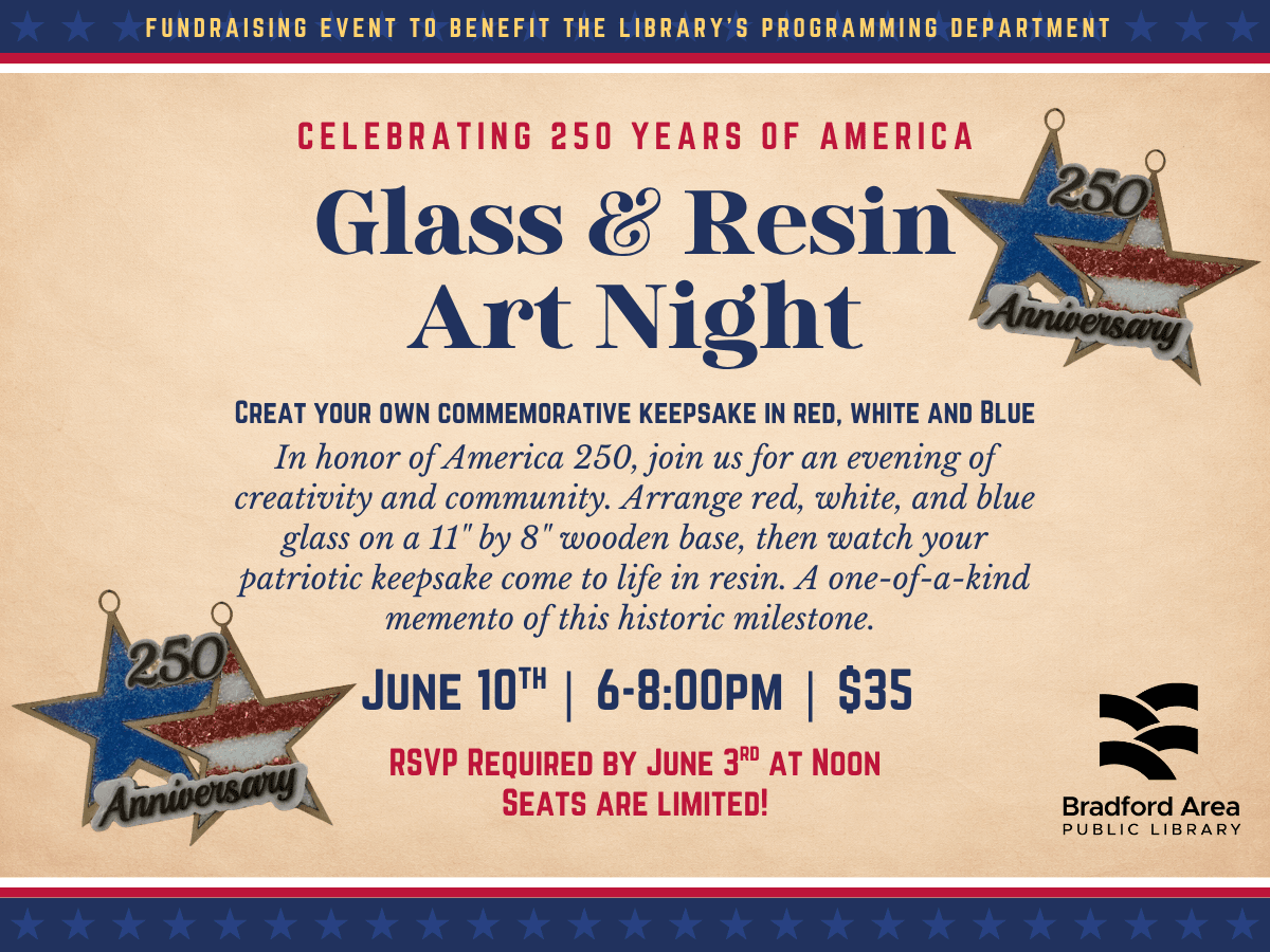 In honor of America 250, we will be making a glass and resin decoration to commemorate this historic event!