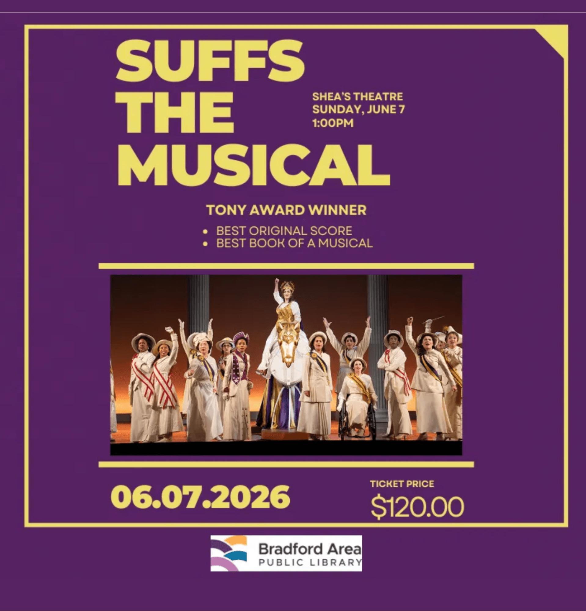 Travel to Shea's Theatre on June 7 for a 1:00PM performance of Suffs: The Musical. Winner of two Tony Awards, Suffs is a musical and a book by Shaina Taub, based on suffragists and the American women's suffrage movement, focusing primarily on the historical events leading up to the ratification of the Nineteenth Amendment to the United States Constitution in 1920 that gave some women the right to vote.